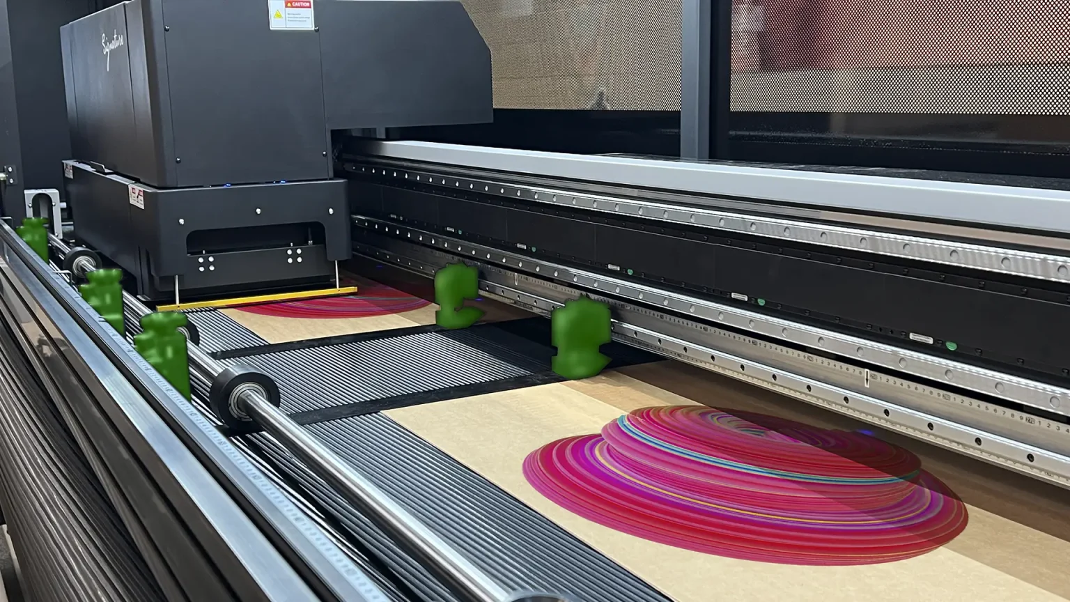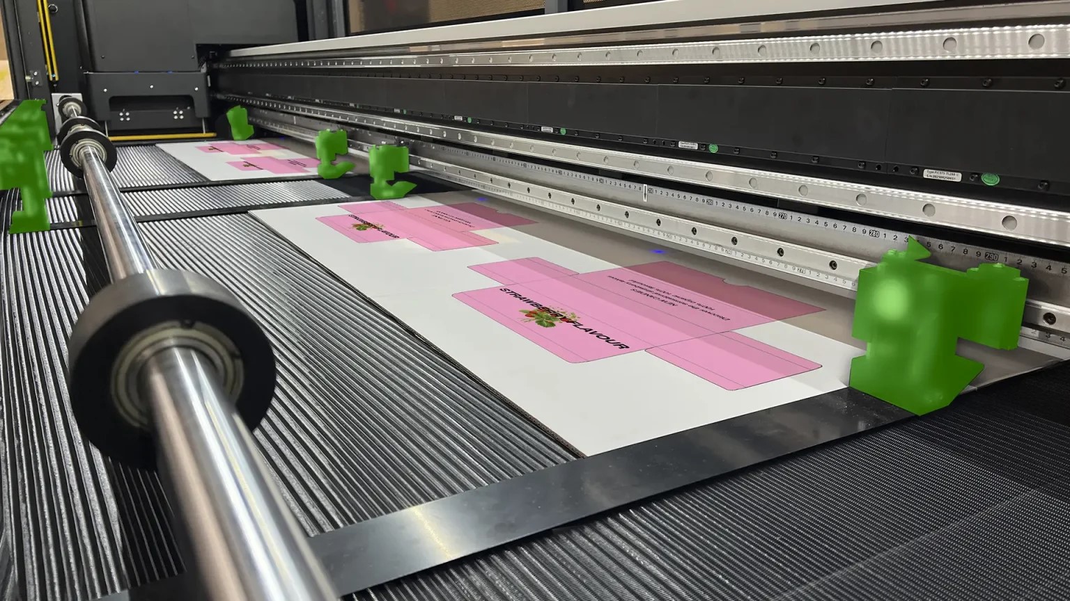 Новая система направляющих напрямую решает эту проблему, прижимая края материала вдоль зоны печати, что обеспечивает лучший контроль в процессе производства и снижает риск столкновения с печатающими головками.