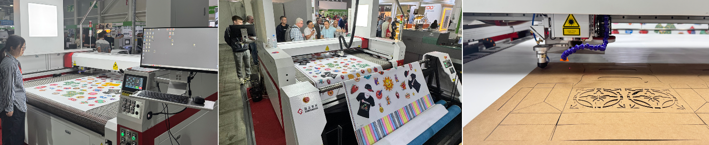 Лазерный резак Golden Laser ZJJG вызвал высокий интерес гостей выставки. Представленная модель ZJJG-180120LD имеет ширину 180см, её уникальность в наличии двух голов, которые позволяют выполнять в одном задании как резку, так и гравировку, и высокоскоростную перфорацию. Универсальность возможностей станка была продемонстрирована на различных материалах – полипропиленовой пленке, текстиле и картоне. Максимально эффективным использование модели будет для резки, перфорации и гравировки изделий из синтетических и эластичных трикотажных тканей, включая полиэстер и микрофибру в рекламно-сувенирном производстве, а также изготовлении одежды, джинсовых изделий и аксессуаров, сумок, обуви, шарфов и домашнего текстиля, а также гравировки.
